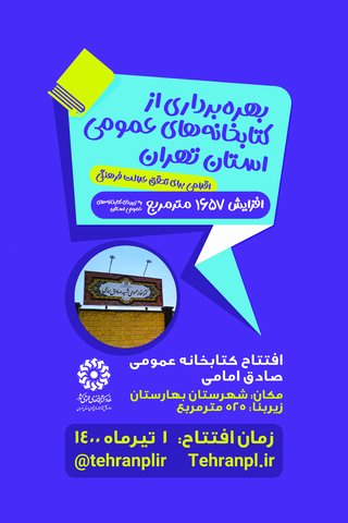 به گزارش روابط عمومی اداره کل کتابخانه های عمومی استان تهران، در ایام مبارک دهه کرامت و به منظور تحقق عدالت فرهنگی کتابخانه عمومی شهید محمدصادق امامی با زیربنای ۵۲۵ مترمربع روز سه شنبه اول تیرماه همزمان با میلاد با سعادت امام رضا(ع) در شهرستان بهارستان افتتاح می شود.