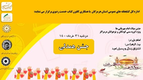 جشن میلاد امام مهربانی با همکاری اداره کتابخانه های شهرستان بندرعباس، کانون کتاب و کتابخوانی خدمت رضوی و اداره کل بهزیستی استان در مراکز تحت نظارت بهزیستی برگزار شد.