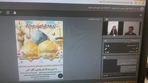 به گزارش روابط عمومی اداره کل کتابخانه های عمومی استان تهران، با هدف ترویج فرهنگ رضوی، نشست شعرخوانی، دلنوشته خوانی و معرفی کتاب «امام رضا(ع) و ایران» همزمان با آغاز جشنواره کتابخوانی رضوی با حضور غلامرضا عبدالله بیگی، رئیس اداره فرهنگ و ارشاد اسلامی؛ حسین محمدی، رئیس اداره کتابخانه های عمومی، اعضای محفل ادبی و کتابداران کتابخانه های عمومی شهرستان دماوند در بستر فضای مجازی برگزار شد.