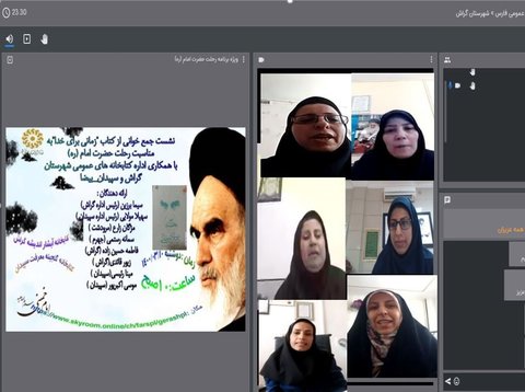 در ادامه برنامه های کتابخانه های عمومی فارس در خردادماه، روز دوشنبه ۱۰ خرداد، نشست جمع خوانی کتاب «زمانی برای خدا» با همکاری کتابخانه های عمومی شهرستان های سپیدان و گراش به مناسبت بزرگداشت رحلت امام خمینی (ره) در فضای اسکای روم برگزار شد. در این نشست مجازی، صفحاتی از کتاب «زمانی برای خدا» تألیف غلامرضا شریعتی مهر از انتشارات بوستان کتاب قم که مروری بر زندگانی و سیره عملی، خانوادگی و فردی امام خمینی (ره) با استناد به خاطراتی نقل شده از زندگی ایشان است، توسط کتابداران سپیدان و گراش خوانده شد.