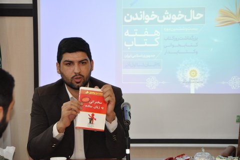 در ادامه این نشست مجتبی رمضانی شیرکوهی، معاون اداری و مالی؛ جلال فردی مقدم، مسئول امور اداری؛ سعیده شفیعی ثابت کارشناس امور منابع؛ پوریا قویدل، کارشناس امور انجمن ها و مجید زمانداری، مسئول روابط عمومی اداره کل کتابخانه های عمومی استان، بترتیب کتاب های «سخنرانی به زبان ساده»نوشته مالکوم کوشنر، ترجمه محمدابراهیم گوهریان و فاطمه نورانی، «ترکه های درخت البالو» اثر اکبر خلیلی، «رمان تیک» مجموعه کتاب های تربیتی، گردآوری انتشارات شفق، «زنی با کفشهای مردانه» اثر محمدعلی گودینی و« جای پای خداوند در هر معجزه» نوشته نیل دونالد والش و ترجمه فرانک سالاری معرفی کردند.