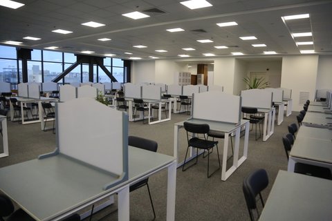 کف سالن‌های مطالعه و فضاهای نیازمند سکوت، موکت‌ شده ‌است. جنس این موکت از الیاف ضد حریق، ضدآب و ضد لک است و علاوه بر اینکه مانع از ایجاد صدای برخورد کف کفش با زمین می‌شود، به جذب صدای محیط (ویژگی آکوستیک) کمک می‌کند.