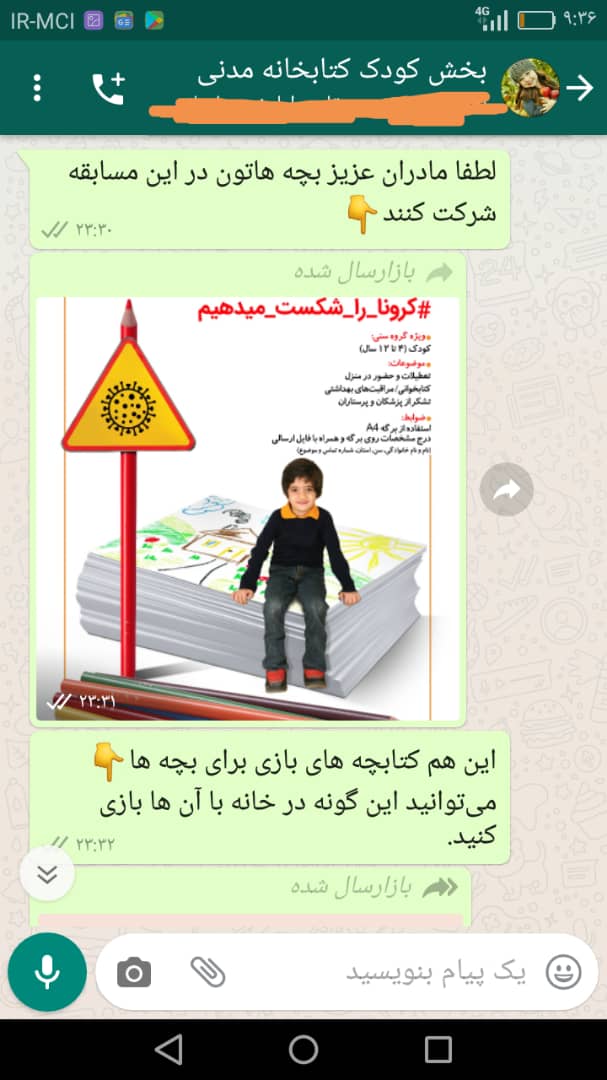 نوشین جعفرنژاد، مسئول کتابخانه عمومی شهید آیت‌الله مدنی کازرون در استان فارس تعامل با سایر گروه‌های مجازی در شهرستان را عامل معرفی بهتر این کتابخانه دانست و گفت: تعداد زیادی از شرکت کنندگان در برنامه‌های فرهنگی ما از افرادی هستند که در گذشته عضو کتابخانه نبودند و به واسطه همین فعالیت‌های فرهنگی با کتابخانه آشنا شده‌اند.