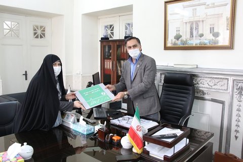 همچنین در این اقدام، ضمن حضور در کنار کارکنان این مرکز و قدردانی از زحمات آنان، تصاویری از اشعار برگزیده در پویش اقتراح ماسک به آنها اهدا شد.