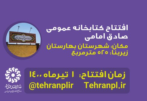 به گزارش روابط عمومی اداره کل کتابخانه های عمومی استان تهران، در ایام مبارک دهه کرامت و به منظور تحقق عدالت فرهنگی کتابخانه عمومی شهید محمدصادق امامی با زیربنای ۵۲۵ مترمربع روز سه شنبه اول تیرماه همزمان با میلاد با سعادت امام رضا(ع) در شهرستان بهارستان افتتاح می شود.