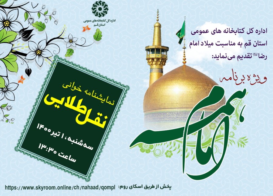 به گزارش روابط عمومی اداره کل کتابخانههای عمومی استان قم، به مناسبت دهه کرامت و میلاد امام رضا(ع)، به همت اداره کل کتابخانههای عمومی استان قم ویژه برنامه «امام همه» روز سهشنبه ۱ تیر ۱۴۰۰ ساعت ۱۳:۳۰ به صورت مجازی برگزار میشود.