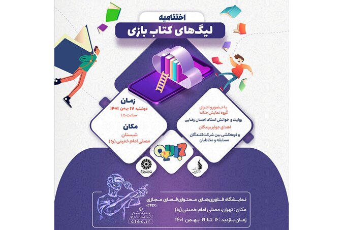 مراسم اختتامیه و معرفی برگزیدگان رویداد «کتاب بازی» در دومین روز نمایشگاه فناوری‌های محتوای فضای مجازی در مصلی امام خمینی (ره) برگزار می‌شود.