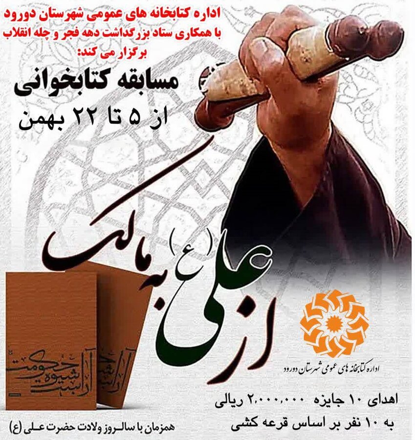 به گزارش روابط عمومی اداره کل کتابخانه های عمومی لرستان، مسابقه کتابخوانی «از علی(ع) به مالک» که کار خود را با انتشار فراخوانی از ابتدای بهمن ماه سال جاری به مناسبت ولادت حضرت امام علی (ع) با هدف آشنایی هرچه بیشتر عموم مردم با فضائل اهل بیت (ع)، و تقویت پیوند افراد غیرعضو با کتابخانههای عمومی در شهرستان دورود آغاز کرده بود، پس از مهلت قانونی شرکت در مسابقه، به کار خود پایان داد.