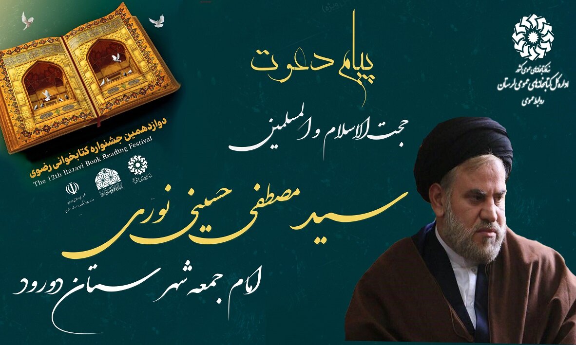 به گزارش روابط عمومی اداره کل کتابخانه های عمومی لرستان، با توجه به لزوم ترویج فرهنگ کتابخوانی در جامعه و به مناسبت برگزاری دوازدهمین جشنواره کتابخوانی رضوی، حجت الاسلام و المسلمین سید مصطفی حسینی نوری، امام جمعه شهرستان دورود در پیامی از عموم مردم برای شرکت در دوازدهمین دوره جشنواره کتابخوانی رضوی دعوت کرد. متن پیام به این شرح است: