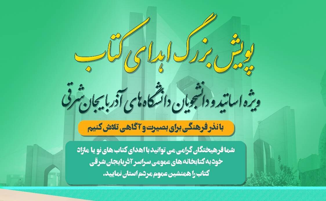 به گزارش روابط عمومی ادارهکل کتابخانههای عمومی استان آذربایجان شرقی، در راستای تقویت منابع و مجموعه کتابخانههای عمومی پویش بزرگ «اهدای کتاب؛ ویژه اساتید و دانشجویان دانشگاه های آذربایجان شرقی» در استان اجرا می شود.