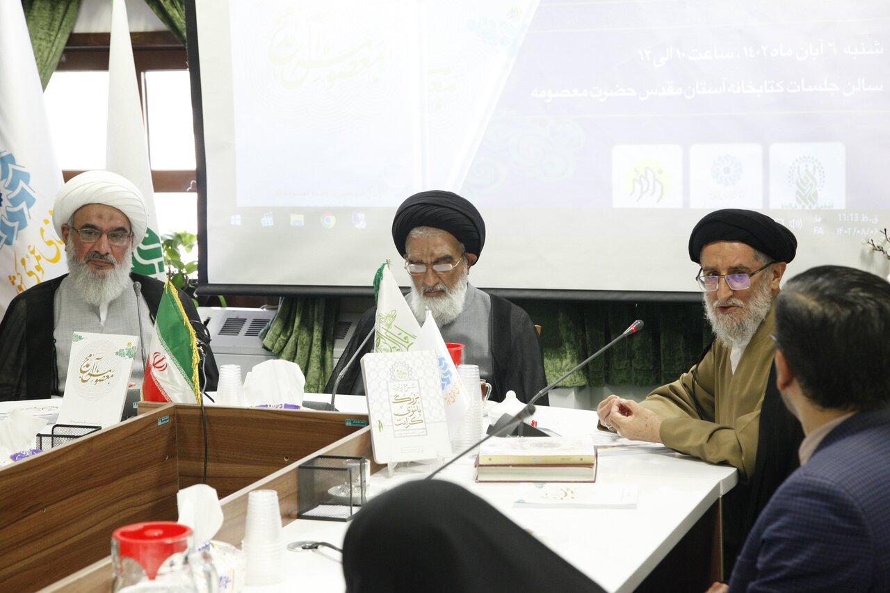 به گزارش روابط عمومی اداره کل کتابخانه های عمومی استان قم، به مناسبت وفات شهادت‌گونه حضرت فاطمه معصومه (س) و با همکاری کتابخانه آستان مقدس حضرت فاطمه معصومه (سلام الله علیها)، اداره کل کتابخانه های عمومی استان قم و اداره کل کتابخانه های عمومی استان بوشهر، نشست نقد و بررسی کتاب «معصومه آل محمد (ص)» با حضور آیت الله غلامعلی صفایی بوشهری، امام جمعه بوشهر و نماینده ولی فقیه در استان بوشهر و نویسنده کتاب های «معصومه آل محمد (ص) و «شرح بزرگ زیارتنامه حضرت فاطمه معصومه (س)»؛ آیت الله سید محمد سعیدی، تولیت آستان مقدس فاطمه معصومه (س)، نماینده ولی فقیه و امام جمعه شهر قم؛ حجت الاسلام محمدتقی قادری، استاد حوزه و دانشگاه و منتقد اثر؛ حسین غریب مدیر کل امور اجتماعی و فرهنگی استانداری قم؛ حجت الاسلام علی اشرف عبدی، مدیر کتابخانه آستان مقدس حضرت فاطمه معصومه (س)؛ اسماعیل رهنورد، مدیر کتابخانه مسجد اعظم قم؛ مهدی محمدی شجاعی، مدیر کتابخانه دانشگاه ادیان و مذاهب قم؛ مهدی توکلیان، مدیرکل کتابخانه های عمومی استان قم و جمعی از کتابداران، فعالان فرهنگی و علاقه مندان در سالن جلسات حضرت خدیجه کتابخانه آستان مقدس حضرت فاطمه معصومه (س) برگزار و همچنین به صورت زنده از طریق اسکای روم اداره کل کتابخانه عمومی استان قم پخش شد.
