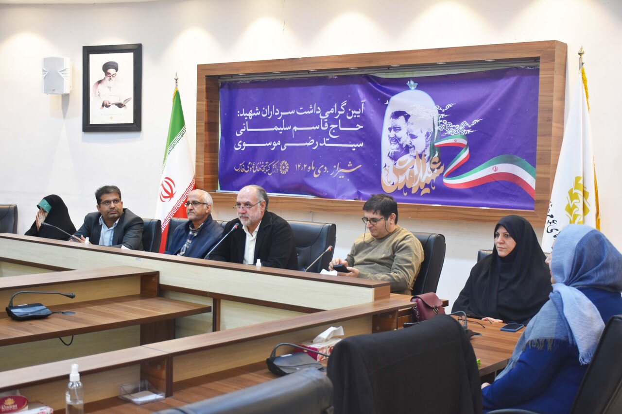 به گزارش روابط عمومی اداره کل کتابخانه های عمومی فارس، ویژه‌برنامه سراسری «شهید قدس» روز چهارشنبه ۱۳ دی ماه همزمان با چهارمین سالگرد شهادت سردار سپهبد حاج قاسم سلیمانی در شیراز برگزار شد. در این نشست که به صورت مجازی و همزمان با سراسر کشور برگزار شد، غلامرضا کافی، استاد زبان و ادبیات فارسی دانشگاه شیراز و دبیرمحفل ادبی قند پارسی؛ عبدالرضا قیصری، دبیرمحفل ادبی طنز بی شوخی، هاشم کرونی؛ حسین کیوانی؛ پروین جاویدنیا؛ شهناز باصری و سارا رمضانی از شاعران مطرح استان فارس به خوانش سروده های خود پرداختند.