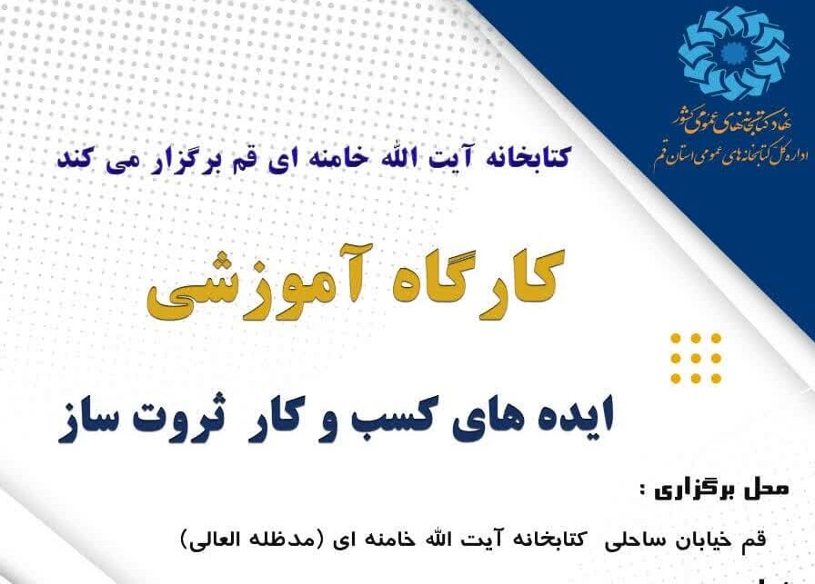 به همت کتابخانه عمومی آیت الله خامنه ای (مدظله العالی) و در حاشیه نمایشگاه کسب و کار های کوچک، کارگاه آموزشی «کسب و کار ثروت ساز» برگزار می شود.