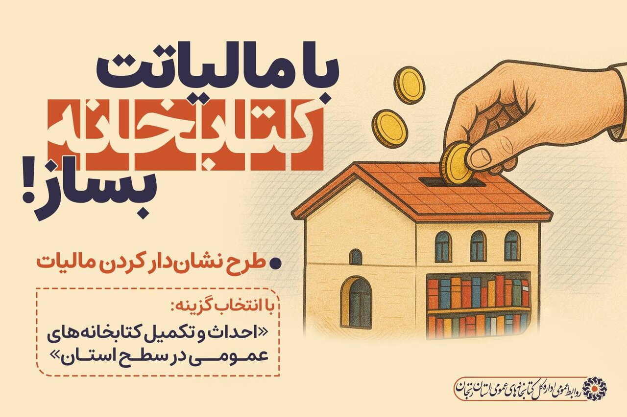 در راستای طرح نشان دار کردن مالیات امکان انتخاب گزینه «احداث و تکمیل کتابخانههای عمومی در سطح استان زنجان» در فرایند پرداخت مالیات توسط شهروندان گرامی فراهم شد.