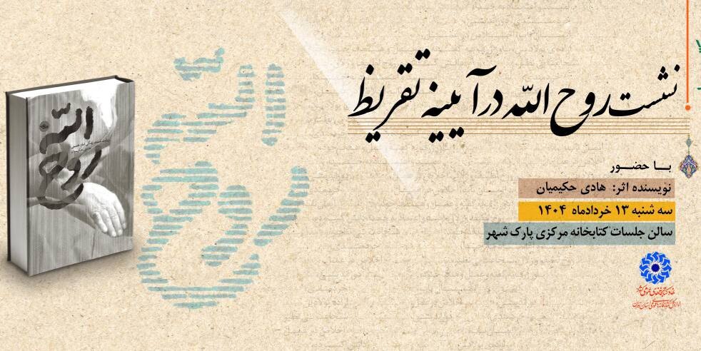 به مناسبت سی و ششمین سالگرد ارتحال امام خمینی(ره) نشست «روح‌الله در آئینه تفریظ» با حضور هادی حکیمیان؛ نویسنده اثر سه شنبه ۱۳ خردادماه در کتابخانه مرکزی پارک شهر برگزار می‌شود.