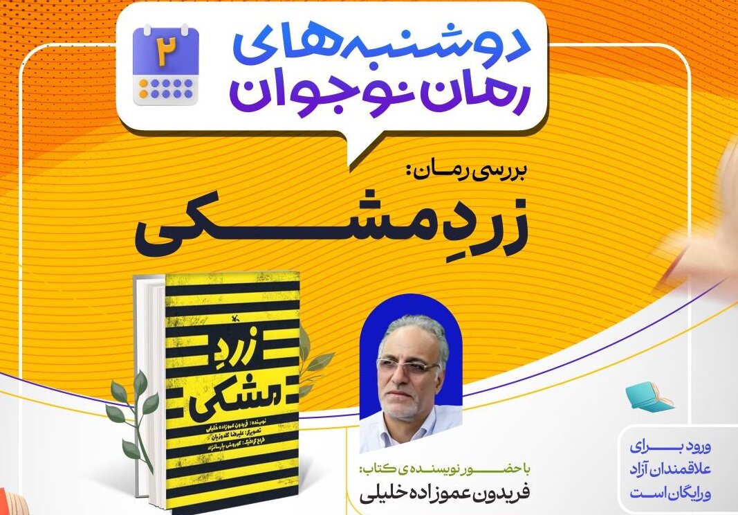 نشست نقد و بررسی کتاب رمان «زردِ مشکی» اثر فریدون عموزاده خلیلی به همراه کارگاه «اتاق تجربه برای خلق رمان نوجوان» با همکاری اداره کل کتابخانه‌های عمومی استان فارس، سازمان فرهنگی و اجتماعی شهرداری شیراز و مرکز مطالعات ادبیات کودک دانشگاه شیراز برگزار می شود.