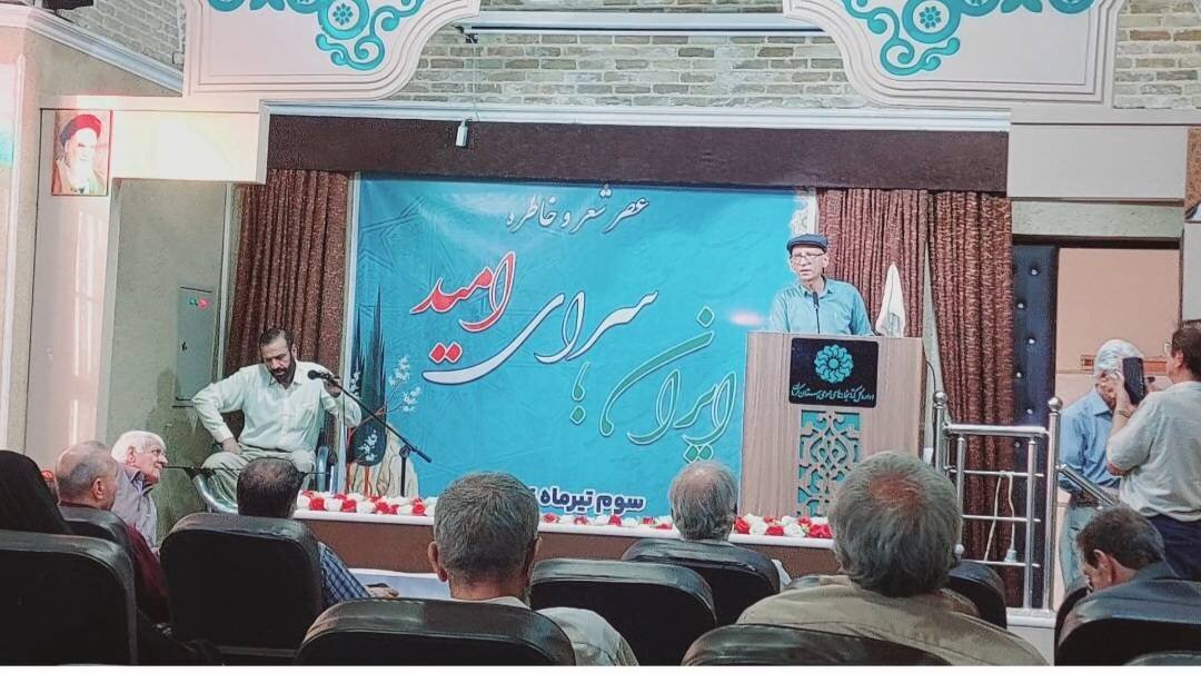 به گزارش روابط عمومی اداره کل کتابخانه های عمومی استان کرمان، عصر شعر و خاطره «ایران؛ سرای امید» از سلسله برنامه های ایستاده برای ایران در سالن باستانی پاریزی کتابخانه مرکزی میزبان شاعران آئینی، حماسی و مقاومت بود که در مدت اخیر با سروده‌های حماسی و مقاومت خود و انتشار آن‌ها در فضای مجازی روحیه ملی و وطن دوستی را در مردم تقویت می‌کردند.