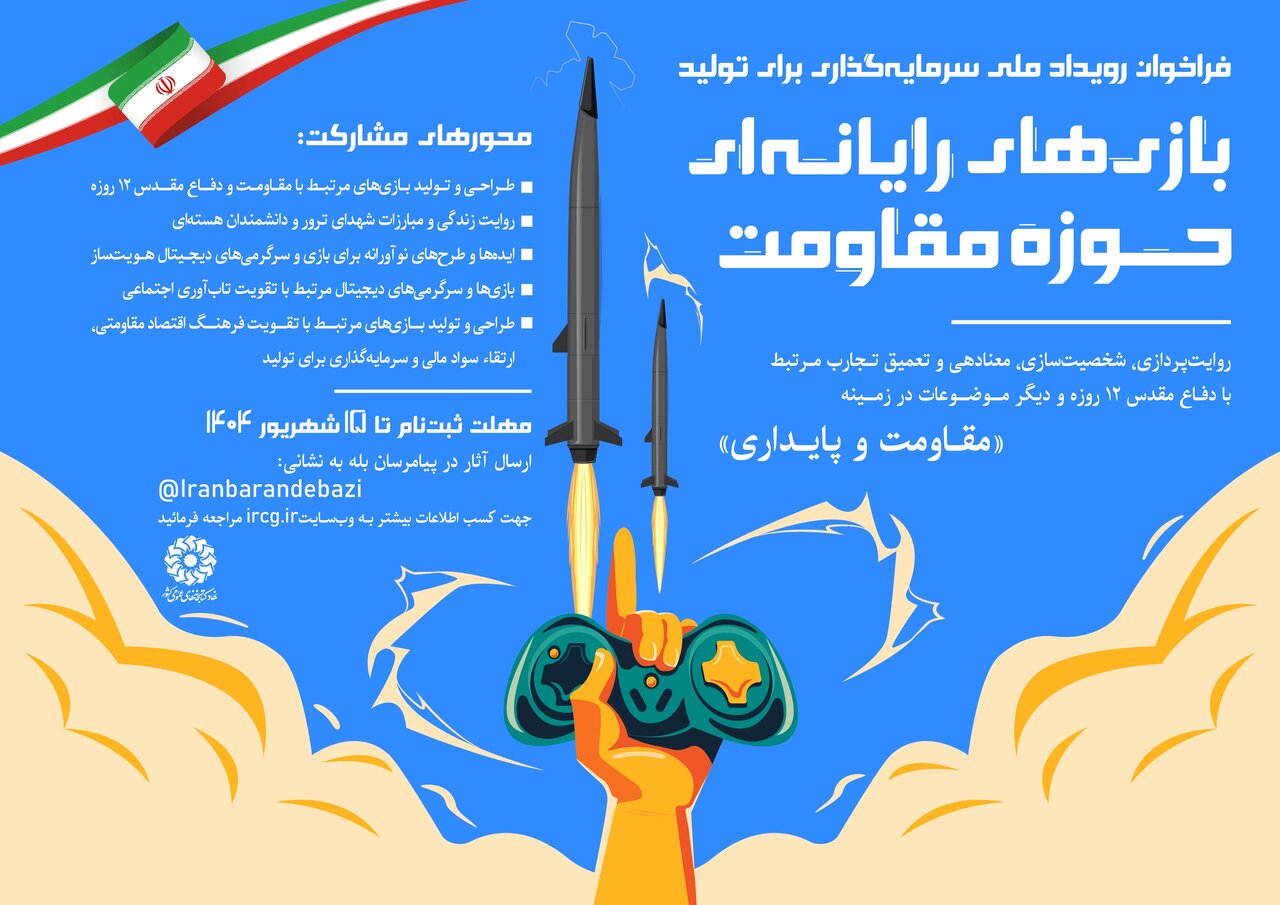 علاقهمندان میتوانند در محورهای «طراحی و تولید بازیهای مرتبط با مقاومت و دفاع مقدس ۱۲ روزه»، «روایت زندگی و مبارزات شهدای ترور و دانشمندان هستهای»، «ایدهها و طرحهای نوآورانه برای بازیها و سرگرمیهای دیجیتال هویتساز»، «بازیها و سرگرمیهای دیجیتال مرتبط با تقویت تابآوری اجتماعی» و «طراحی و تولید بازیهای مرتبط با تقویت فرهنگ اقتصاد مقاومتی، ارتقای سواد مالی و سرمایهگذاری برای تولید» برای مشارکت در این رویداد ثبتنام کنند.