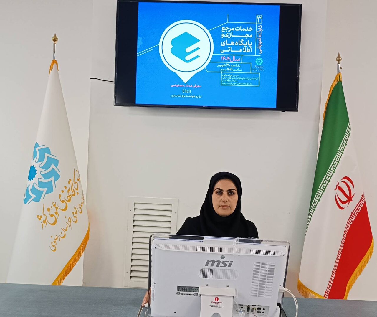 به گفته فرزانه عامل، رابط مرجع مجازی استان خراسان رضوی، در این کارگاه که با حضور کتابداران و رابطین مرجع مجازی برگزار شد، بر ضرورت به‌کارگیری فناوری‌های هوش مصنوعی در خدمات کتابخانه‌ای تأکید شد. در عصر انفجار اطلاعات و افزایش حجم منابع پژوهشی، کتابداران به عنوان راهنمایان اصلی کاربران در یافتن اطلاعات معتبر، با چالش‌های جدیدی روبه‌رو هستند. هوش مصنوعی با توانایی پردازش سریع داده‌ها، تحلیل محتوا و ارائه پاسخ‌های هوشمند، می‌تواند به کتابداران در صرفه‌جویی زمان، افزایش دقت و بهبود خدمات مرجع کمک کند. ابزارهایی مانند Elicit با خلاصه‌سازی مقالات، استخراج خودکار اطلاعات کلیدی و پاسخگویی به سوالات پژوهشی، نه تنها فرایند جست‌وجو را تسهیل می‌کنند، بلکه امکان تمرکز کتابداران بر مشاوره تخصصی و خدمات ارزش افزوده را فراهم می‌سازند.