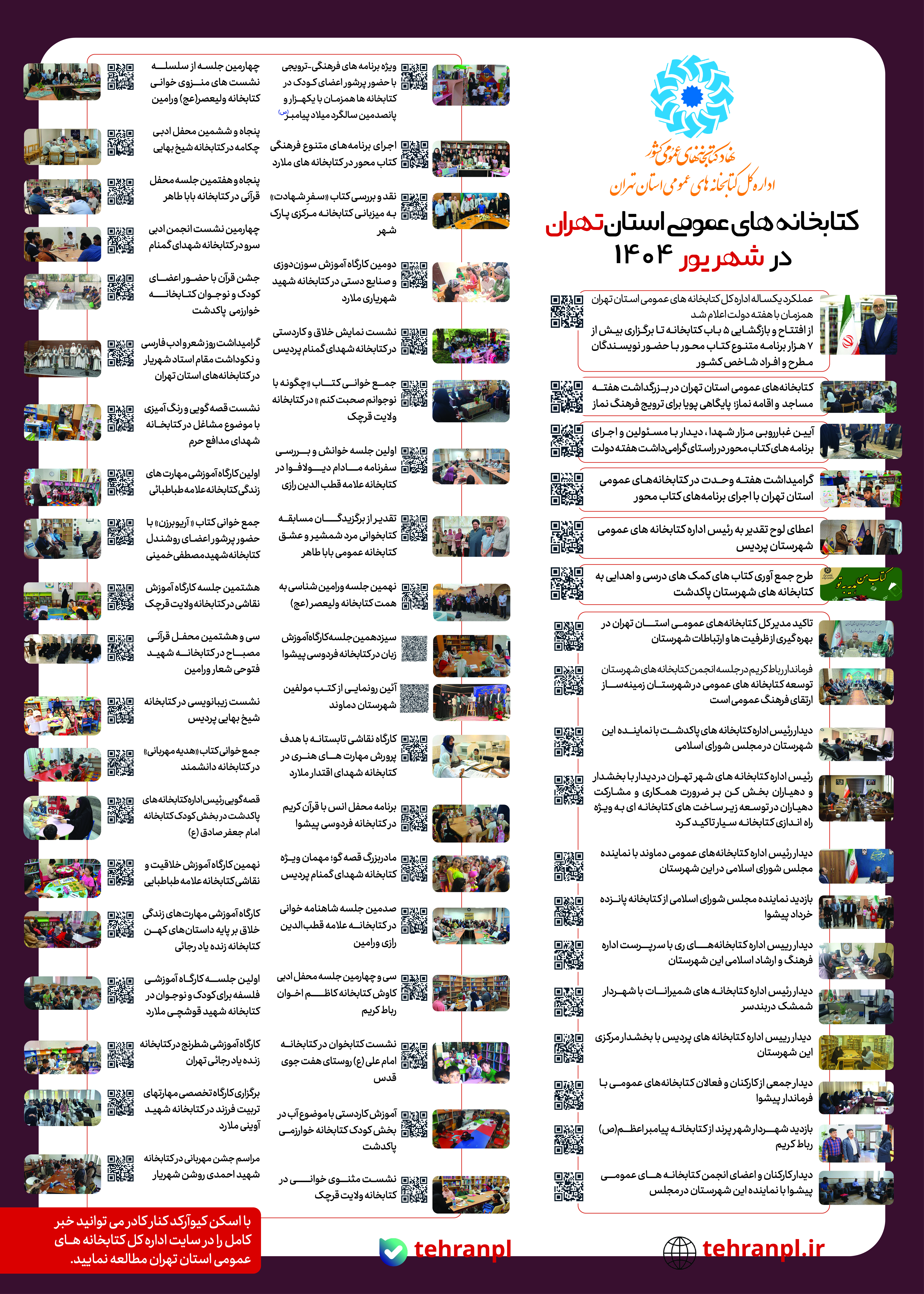 مروری بر اخبار کتابخانه‌های عمومی تهران در ششمین‌ ماه ۱۴۰۴؛