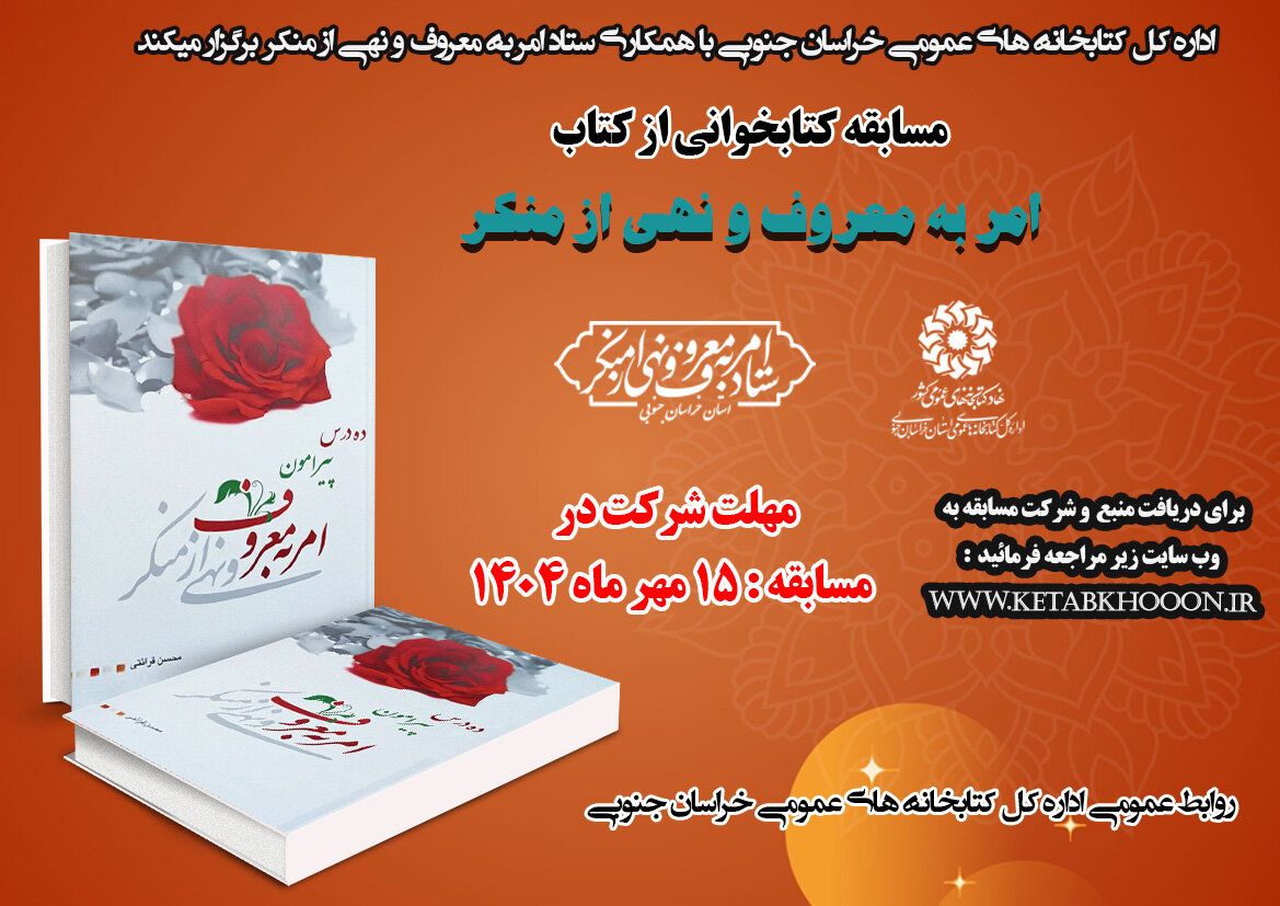 به گزارش روابط عمومی ادارهکل کتابخانههای عمومی استان خراسان جنوبی، این ادارهکل با همکاری ستاد امر به معروف و نهی از منکر استان، مسابقهای بزرگ از کتاب «ده درس پیرامون امر به معروف و نهی از منکر» برگزار میکند؛ مسابقهای که علاوه بر ترویج فرهنگ مطالعه، فرصتی برای بازخوانی یکی از مهمترین آموزههای اجتماعی دین اسلام است.