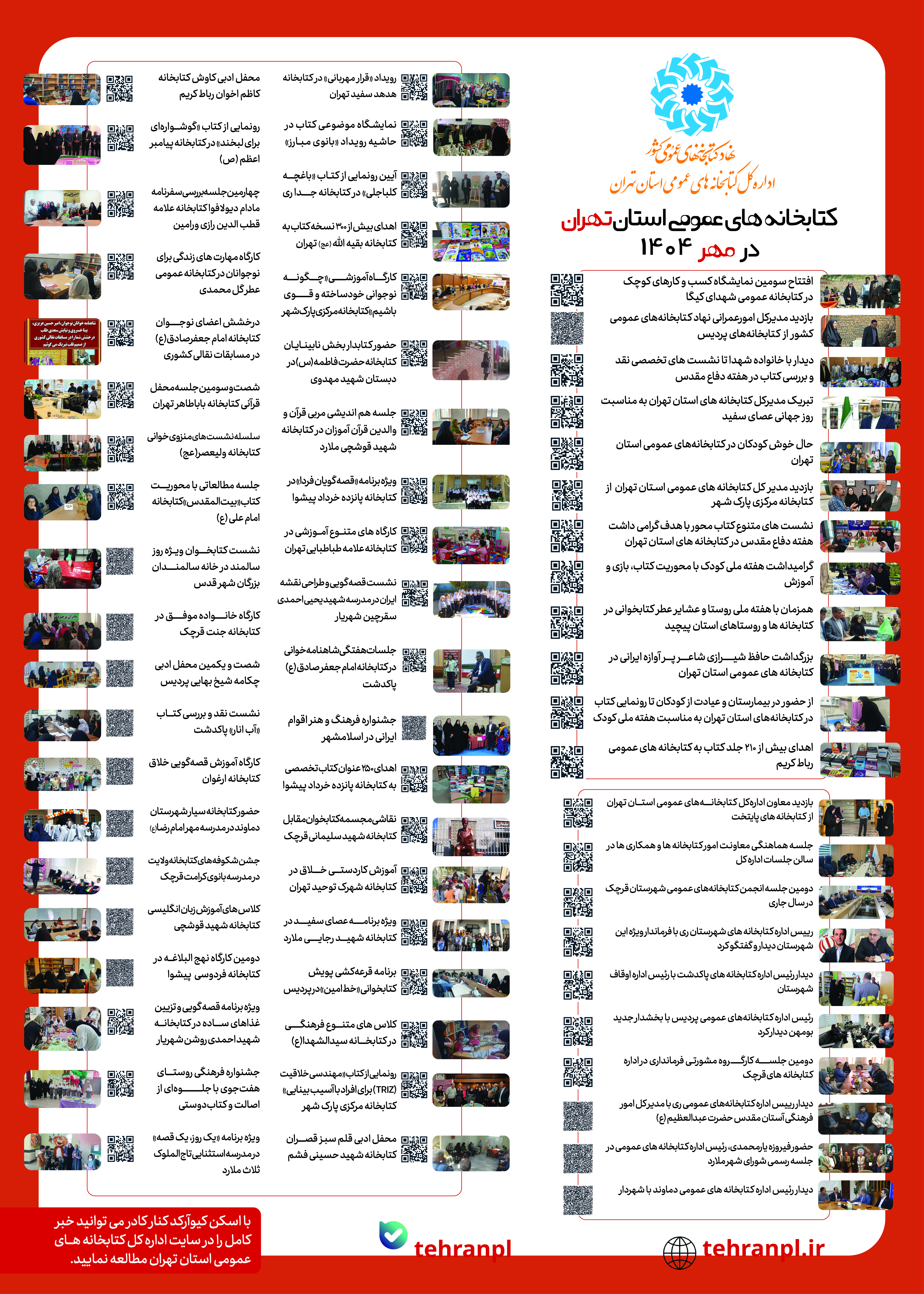 مروری بر اخبار کتابخانه‌های عمومی تهران در مهرماه ۱۴۰۴؛