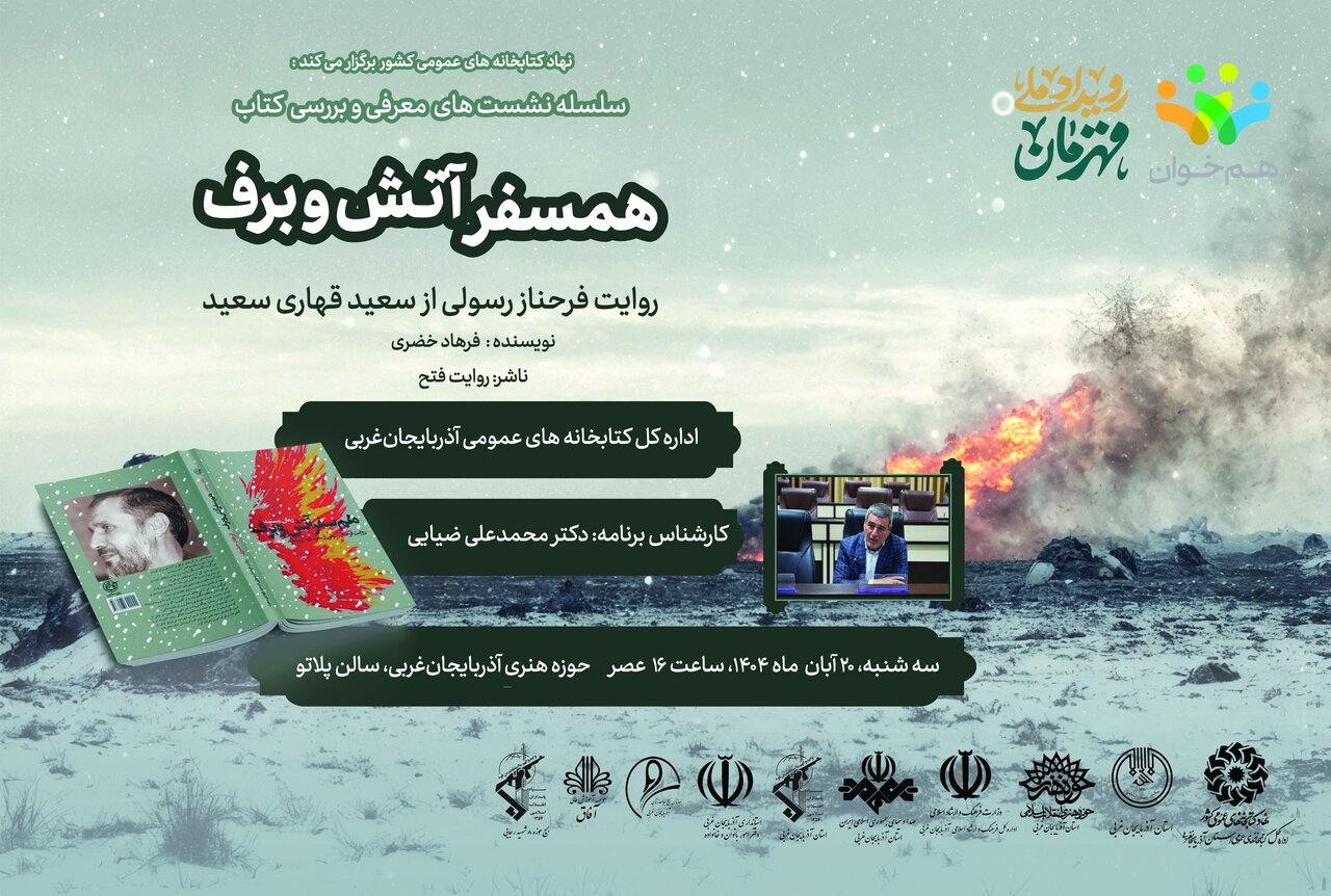 در آستانه سی و سومین دوره هفته کتاب جمهوری اسلامی ایران، نشست معرفی و بررسی کتاب «همسفر آتش و برف»، روایت فرحناز رسولی از سعید قهاری‌سعید، در آذربایجان‌غربی برگزار می‌شود.