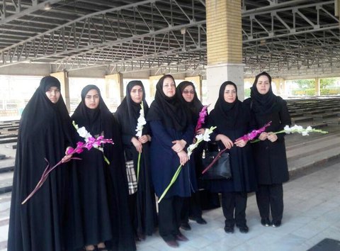 حضور مسئول، کتابداران و اعضای کتابخانه امیرکبیر کرمانشاه در مراسم غبارروبی و عطرافشانی مزار مطهر شهدا