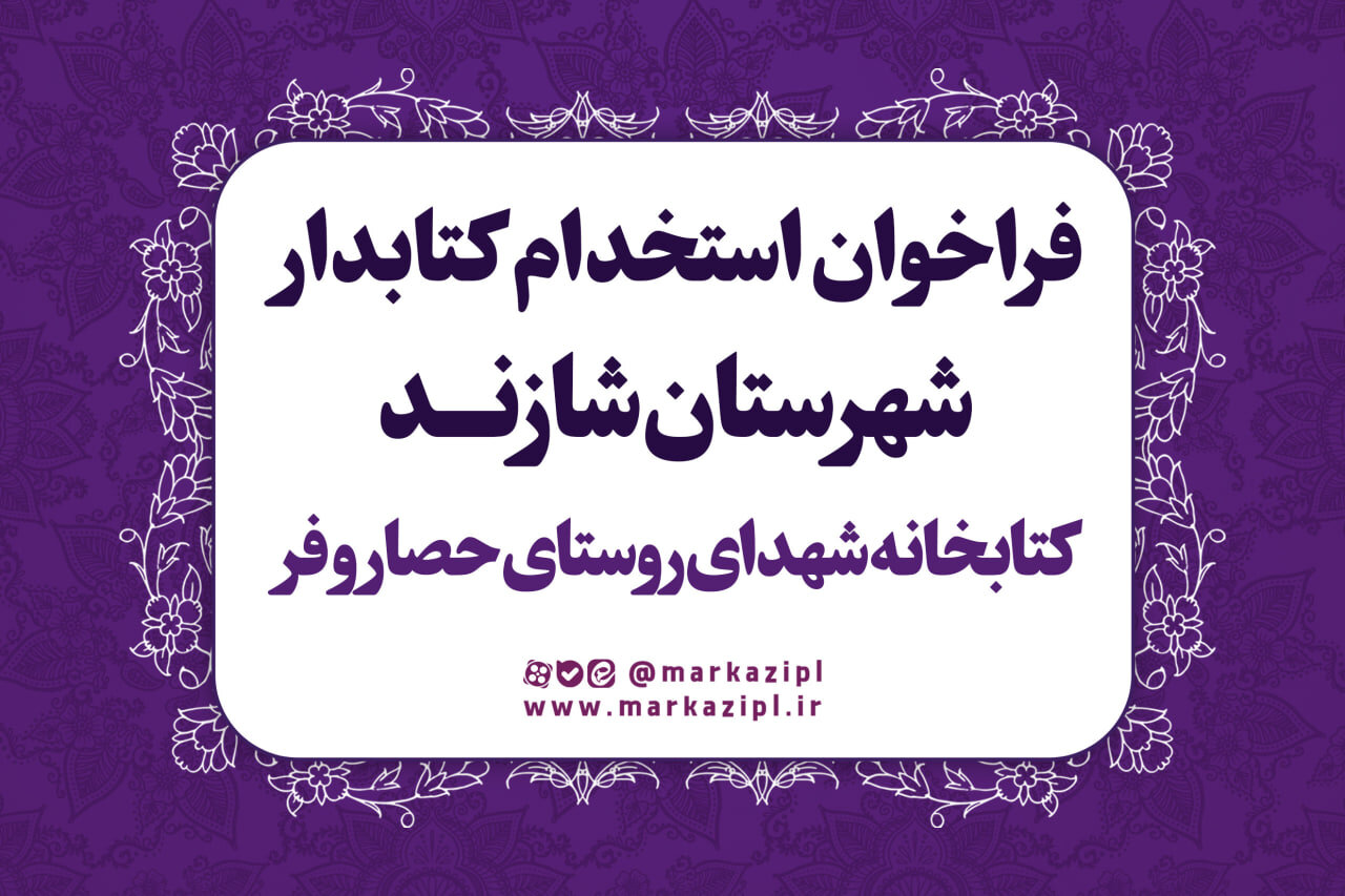 به گزارش روابط عمومی اداره‌کل کتابخانه‌های عمومی استان مرکزی، این اداره‌کل با انتشار اطلاعیه‌ای، از آغاز فرایند جذب نیروی انسانی ساعتی برای فعالیت در کتابخانه عمومی شهدای روستای حصار و فر، شهرستان شازند خبر داد.
