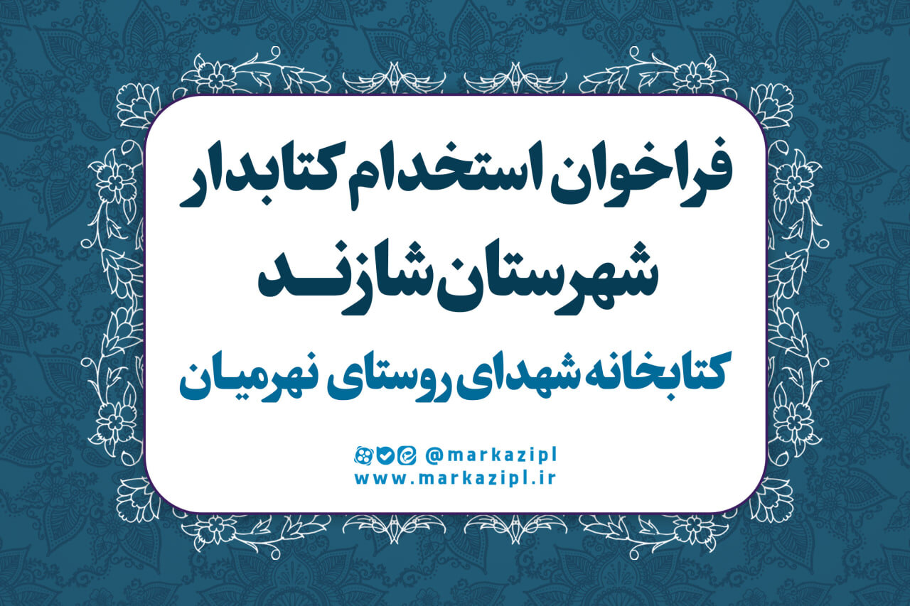 اداره‌کل کتابخانه‌های عمومی استان مرکزی به‌منظور تکمیل کادر نیروی انسانی، فراخوان جذب یک نفر برای همکاری در کتابخانه عمومی شهدای روستای نهرمیان، شهرستان شازند منتشر کرد.