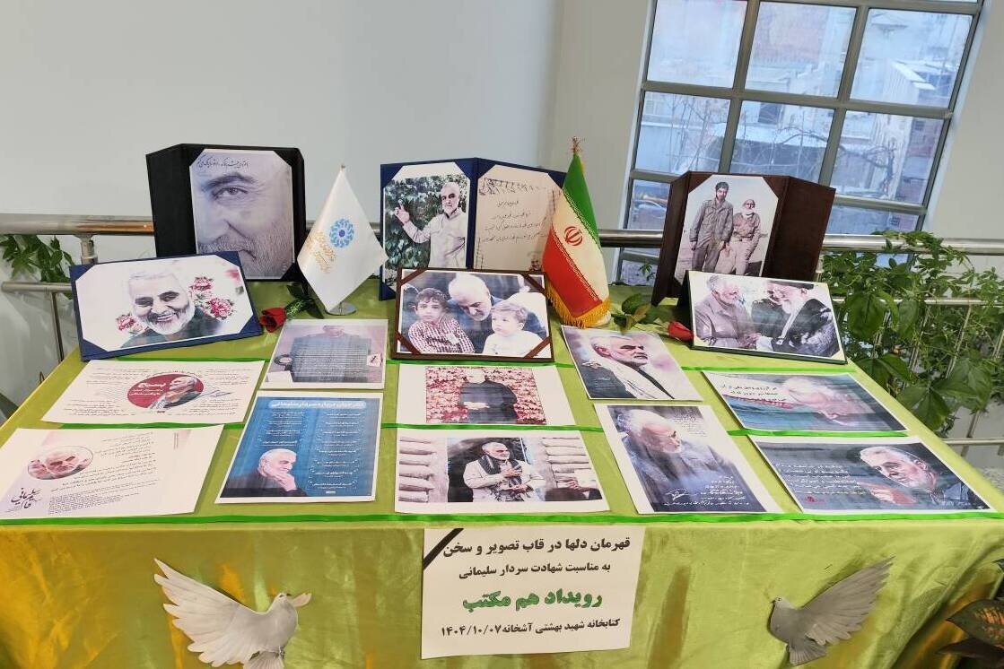 در راستای گرامیداشت یاد و خاطره شهید سپهبد حاج قاسم سلیمانی، کتابخانه شهید بهشتی آشخانه از روز گذشته، هشتم دیماه، میزبان نمایشگاه عکس و سخنان ارزشمند این شهید والامقام با عنوان «قهرمان دلها در قاب تصویر و سخن» بود.