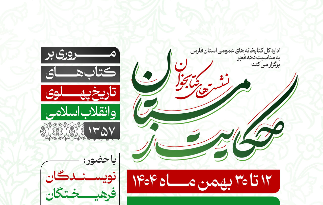 به گزارش روابط عمومی اداره کل کتابخانههای عمومی فارس، نشست کتابخوان «حکایت زمستان» با هدف تبیین تاریخ معاصر ایران، بازخوانی تحولات دوران پهلوی و بررسی زمینهها و پیامدهای پیروزی انقلاب اسلامی ۱۳۵۷، از ۱۲ تا ۳۰ بهمنماه ۱۴۰۴ به همت کتابخانه های عمومی فارس در مساجد شاخص سراسر استان فارس برگزار خواهد شد.