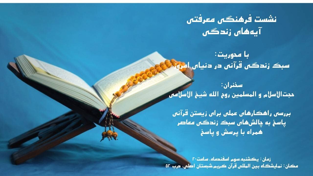 در شب اول این سلسله نشستهای قرآنی حجتالاسلام والمسلمین شیخ اسلامی، دبیر محفل قرآنی کتابخانه باباطاهر شهر تهران، بهعنوان مدرس نشست به بیان سخنرانی با موضوع «سبک زندگی قرآنی در دنیای امروز» و تفسیر سوره های قرآنی مرتبط با این مبحث خواهد پرداخت.