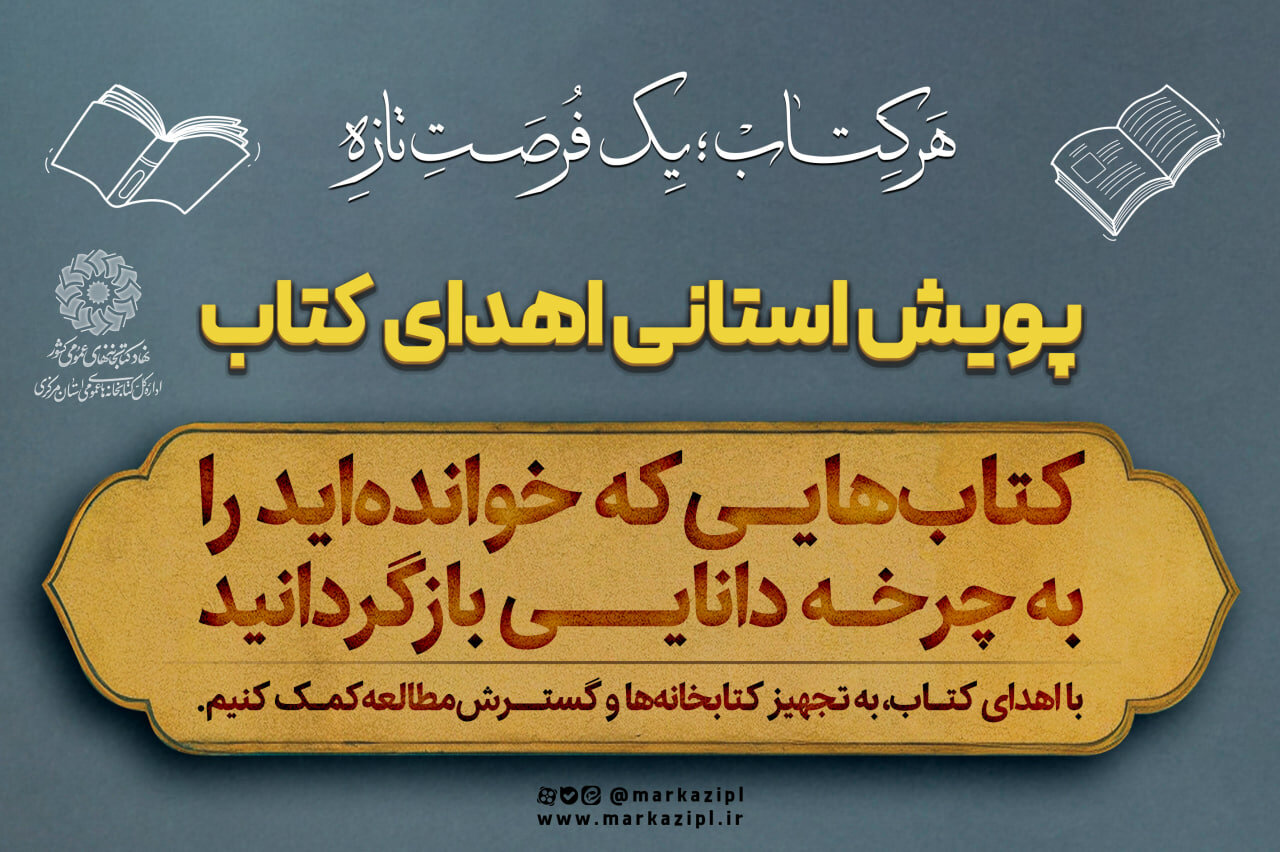 پویش اهدای کتاب با عنوان «هر کتاب؛ یک فرصت تازه» با هدف ترویج فرهنگ مطالعه و کمک به تجهیز کتابخانه‌ها، در کتابخانه‌های عمومی استان مرکزی آغاز شد.