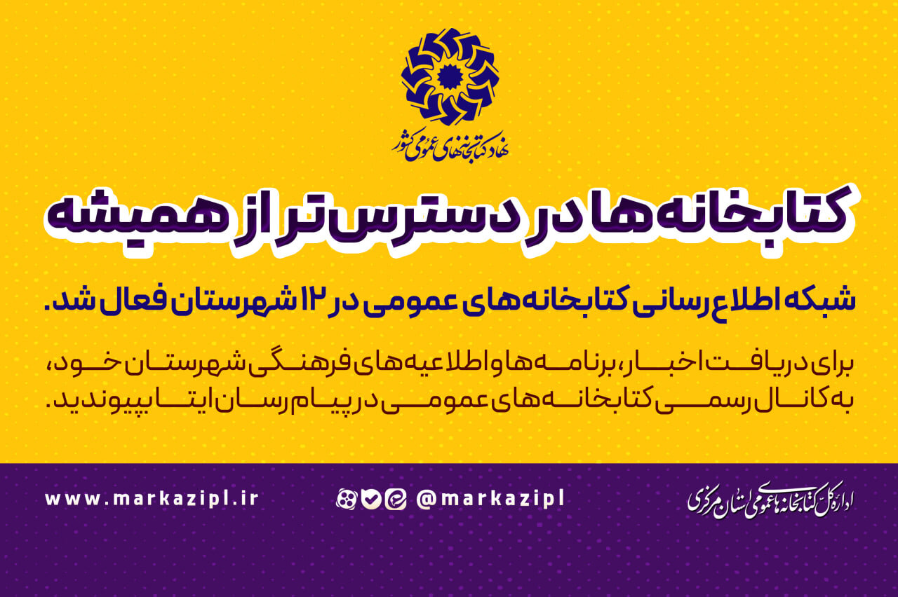 با هدف تسهیل دسترسی شهروندان به تازه‌ترین اخبار و برنامه‌های کتابخانه‌ای، شبکه اطلاع‌رسانی کتابخانه‌های عمومی در ۱۲ شهرستان استان مرکزی آغاز به‌کار کرد.