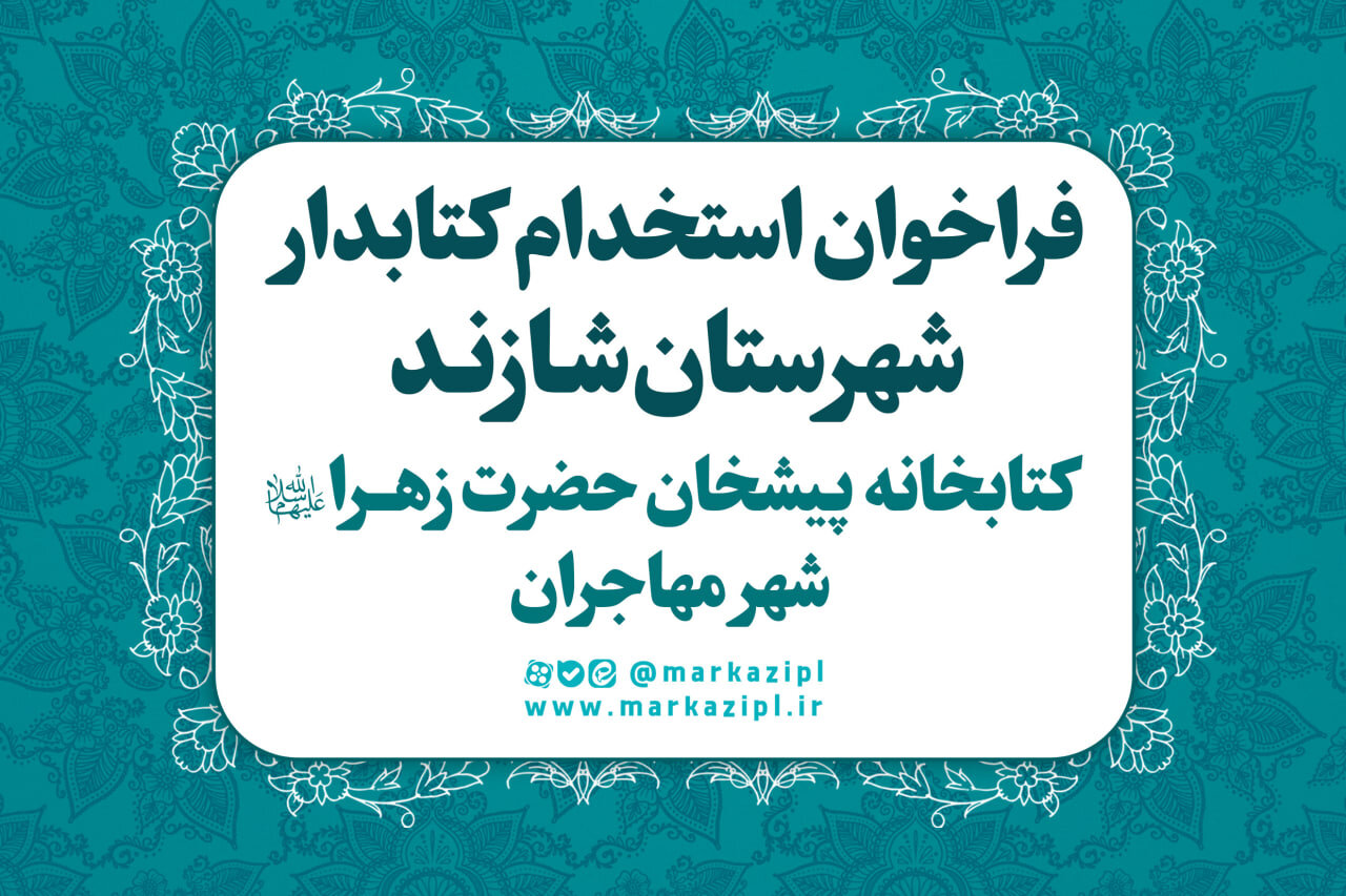 به گزارش روابط عمومی اداره‌کل کتابخانه‌های عمومی استان مرکزی، اداره‌کل کتابخانه‌های عمومی استان به‌منظور تکمیل نیروی انسانی کتابخانه پیشخان حضرت زهرا(س) شهر مهاجران از توابع شهرستان شازند، از میان افراد واجد شرایط یک نفر را در چارچوب قرارداد ساعتی (۴ روز در هفته و روزی ۵ ساعت) دعوت به همکاری می‌نماید.