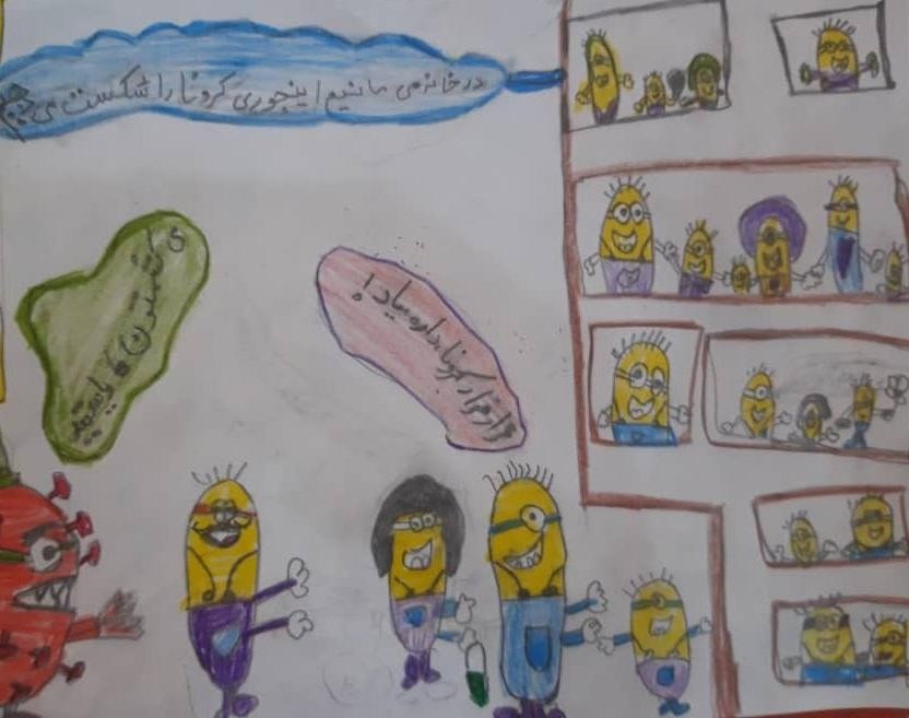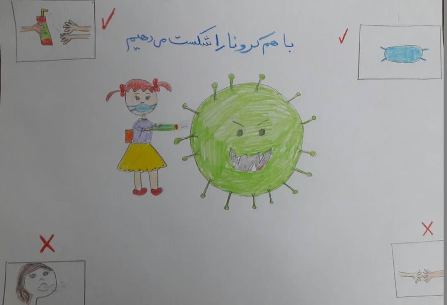 آرزوهای کودکان گیلانی برای شکست کرونا بر روی صفحه سفید کاغذ نقش بست