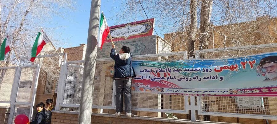 اهتزاز پرچم جمهوری اسلامی ایران در کتابخانه‌های عمومی اصفهان