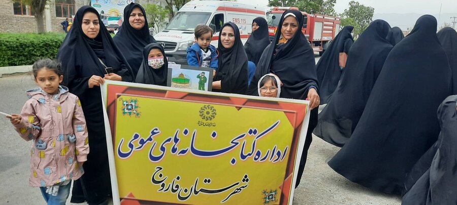 جمعی از کارکنان و کتابداران کتابخانه‌های عمومی استان خراسان‌شمالی با حضور در راهپیمایی روز جهانی قدس با مردم مظلوم فلسطین اعلام همبستگی کردند.