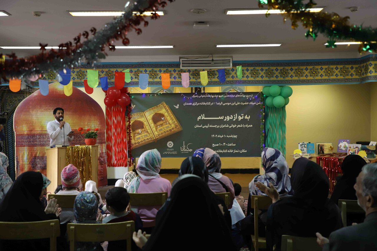 جشن «به تو از دور سلام» به مناسبت میلاد با سعادت حضرت امام علیبنموسیالرضا علیه السلام با همکاری محفل ادبی هگمتانه در کتابخانه مرکزی همدان برگزار شد.