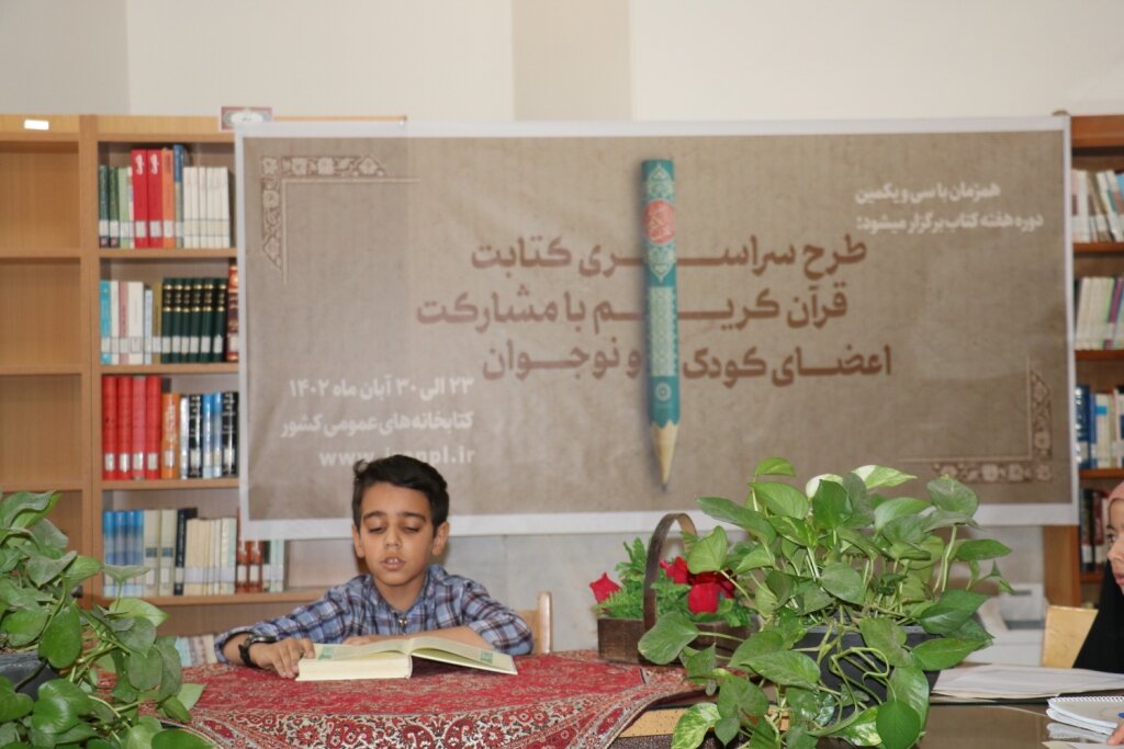 طرح کتابت کلام وحی با حضور اعضای کودک و نوجوان در کتابخانه مرکزی کرمان برگزار شد.