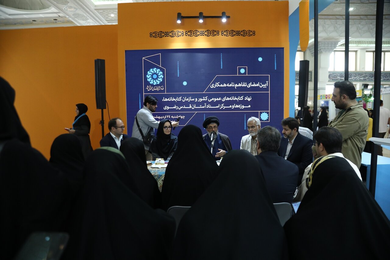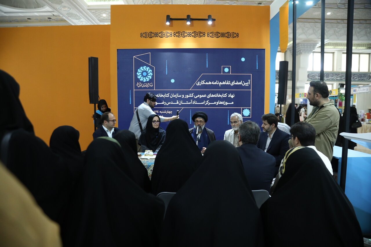 در جریان برگزاری سی‌وششمین نمایشگاه بین‌المللی کتاب تهران، تفاهم‌نامه همکاری نهاد کتابخانه‌های عمومی کشور و سازمان کتابخانه‌ها، موزه‌ها و مرکز اسناد آستان قدس رضوی با حضور آزاده نظربلند، دبیرکل نهاد و حجت‌الاسلام‌والمسلمین سید جلال حسینی، رئیس سازمان کتابخانه‌ها، موزه‌ها و مرکز اسناد آستان قدس رضوی به امضا رسید. در حاشیه مراسم پرچم متبرک حرم مطهر امام رضا (ع) به دبیرکل نهاد به نمایندگی از جامعه کتابداران سراسر کشور هدیه داده شد.