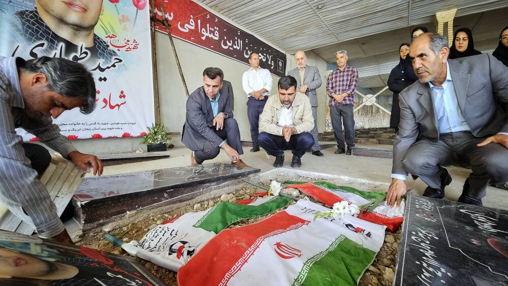 آیین تجدید میثاق کارکنان و کتابداران استان زنجان صبح امروز بر سر مزار شهدای جنگ تحمیلی رژیم صهیونیستی در گلزار شهدای پایین زنجان برگزارشد.