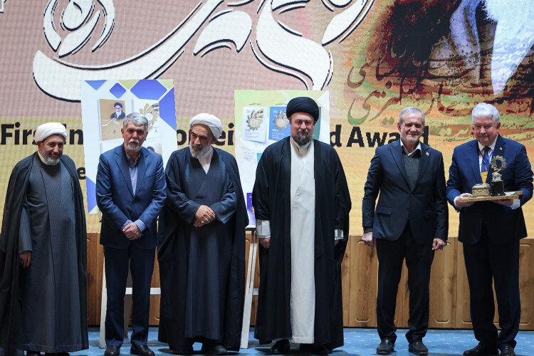 اختتامیه نخستین دوره جایزه بینالمللی امام خمینی (ره)، چهارشنبه ۲۶ آذرماه، با حضور مسعود پزشکیان؛ رئیسجمهور، سیدعباس صالحی؛ وزیر فرهنگ و ارشاد اسلامی، آیتالله سیدحسن خمینی؛ تولیت حرم امام خمینی (ره)، اعضای بیت امام راحل، حجتالاسلام محمدمهدی ایمانیپور؛ رئیس سازمان فرهنگ و ارتباطات اسلامی، آزاده نظربلند؛ دبیرکل نهاد کتابخانههای عمومی کشور، مسئولان و میهمانان داخلی و خارجی، برگزار شد.