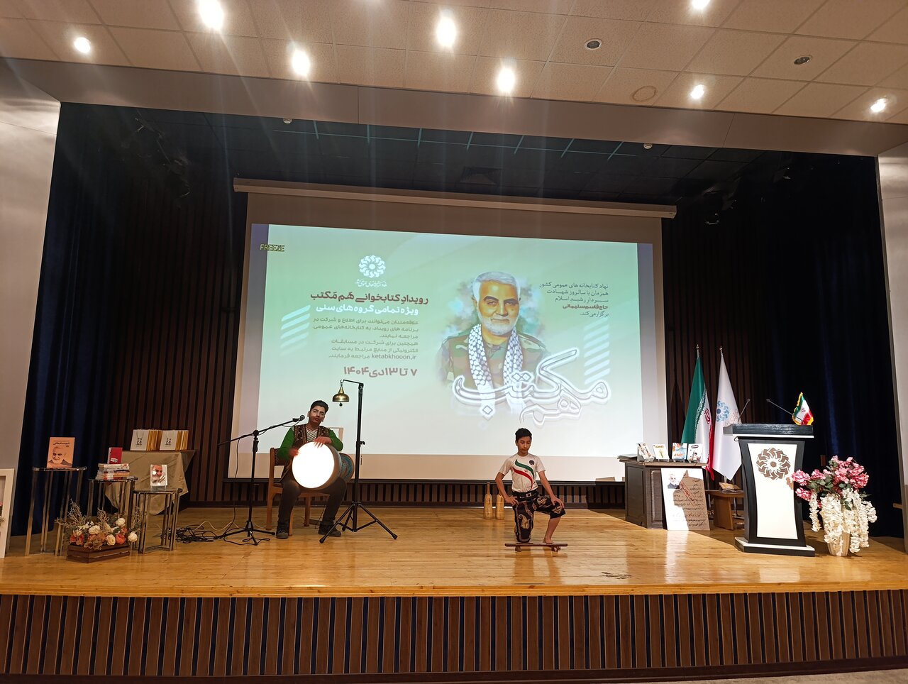 مراسم اختتامیه پویش «سلام، آقا مرحمت» با محوریت کتاب «پهلوان مرحمت» و همچنین برنامه «هممکتب شهید سلیمانی» با هدف تبیین اندیشههای مقاومت و سبک زندگی سردار سلیمانی با حضور محمدحسین قاسمی، مسئول انتشارات کتابک به همراه دانشآموزان مدارس استان قم و مسئولان فرهنگی و جمعی از معلمان و اولیاء با اجرای برنامه های متنوع فرهنگی و همچنین تقدیر از برگزیدگان در سالن الغدیر کتابخانه آیت الله خامنه ای استان قم برگزار شد.